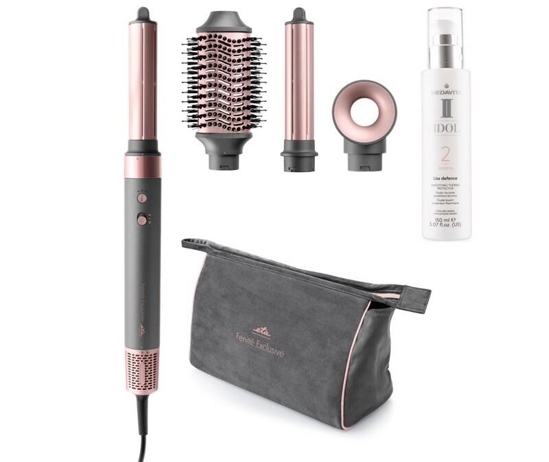 V balení nájdete hneď 3 nástavce. Automatický vzduchový kulmovací nástavec, ktorý vytvára krásne kučery alebo vlny bez poškodenia vlasov. Nástavec na sušenie vlasov, ktorý vaše vlasy šetrne vysuší a zanechá ich krásne hladké a lesklé a Nástavec na sušenie vlasov pre objem, ktorý vašim vlasom v okamihu dodá neuveriteľný objem. Vďaka tomuto nástavcu budú vaše vlasy zároveň vyzerať hustejšie, plnšie a zdravšie. Styler ETA Fenité Exclusive a všetko príslušenstvo ľahko uložíte do elegantného puzdra, ktoré je súčasťou balenia. Bude sa vám hodiť na uskladnenie doma, ako aj pri cestovaní.