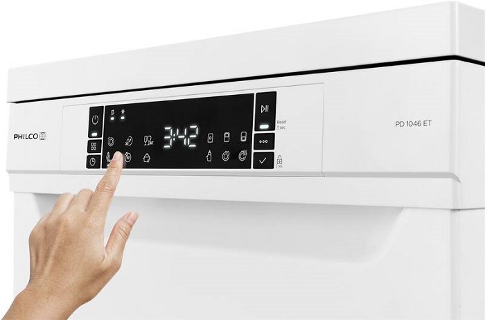 Rozlúčte sa s ručným umývaním riadu a zverte túto činnosť voľne stojacej umývačke Philco PD 1046 ET so šírkou , ktorá sa vďaka svojim rozmerom pohodlne zmestí aj do menšej kuchyne. Je určený na 10 súprav riadu a ponúka praktické funkcie. Energetická trieda E zaručuje účinnú a nenáročnú prevádzku aj pri každodennom používaní.Môžete si vybrať z 6 programov (Predpieranie, Rýchle 30 minút, Jemné 40 °C, Super 50 minút, Eco a Intenzívne 60 °C) a 3 teploty prania. Každý program je prispôsobený tak, aby sa šetrne postaral o každý typ riadu a dokonale vyčistil. Medzi užitočné doplnkové funkcie patria Extra sušenie, Extra umývanie alebo Hygiena+ a k dispozícii je aj detský zámok alebo odložený štart, ktorý umožňuje odložiť začiatok cyklu až o 24 hodín. Výrobca myslel aj na vašu bezpečnosť, preto je umývačka vybavená bezpečnostnou funkciou AquaStop na zabránenie úniku vody a môže sa pochváliť aj ochranou proti pretečeniu a prepeneniu. Funkcia Water Protection+ chráni umývačku riadu pred poškodením v prípade nedostatku vody vo vnútri spotrebiča.