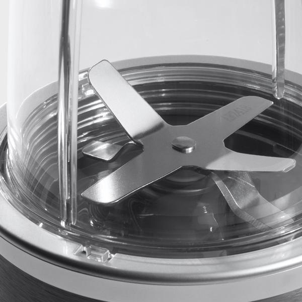 Kompaktný mixér obohatí vašu stravu a zjednoduší jej prípravu. Rýchla extrakcia a jednoduchá obsluha sú jeho silnými stránkami. Vynikajúce koktaily ľahko zaradíte do svojho každodenného jedálnička. Kombinujte ingrediencie podľa vlastnej chuti. Ovocie, zeleninu, bylinky, koreniny alebo orechy spracujte jedným dotykom.