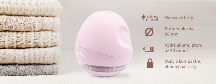 Spoločnosť ETA vyvinula elegantný odstraňovač žmolkov, ktorý si vďaka kompaktným rozmerom môžete zbaliť aj na služobnú cestu. S Jeho pomocou v okamihu odstránite pokrčenie, nitky a iné fľaky z vášho obľúbeného oblečenia a iných textílií a dodáte im nádych novoty.