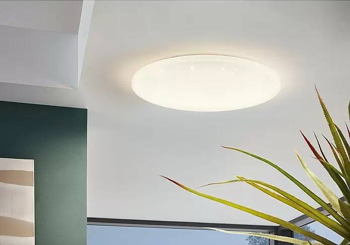 Okrúhle stropné LED svietidlo Eglo Pogliola -S / 50 cm / IP20 / neutrálna bielaStropné LED svietidloPOGLIOLA-S od spoločnosti Eglo je vyrobené sokrúhlym bielym plastovým krytom a bielou kovovou zadnou časťou. Po zapnutí svetla vytvára kryt pri pohybeiskrivý vzhľad pripomínajúcihviezdnu oblohu. Pevne zabudovanéLED diódy poskytujú príjemnéneutrálne biele svetlo. Bez problémov sa hodí do moderných inštalácií. Ponúka jednoduché, ale výrazné osvetlenie pre každú miestnosť - či už v kuchyni, obývačke, spálni, detskej izbe, predsieni alebo jedálni.