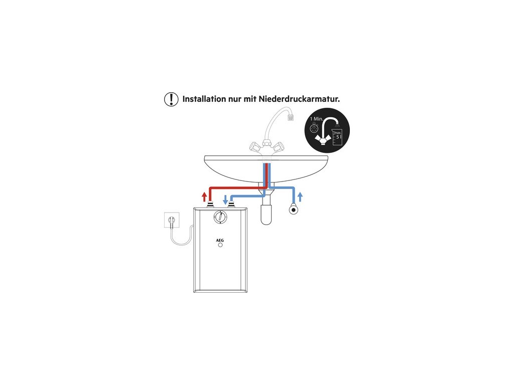 - Podomietkový ohrievač vody AEG U5 / 5 l / 2000 W / 30 °C až 85 °C / IP24 / plast / polypropylén / biely