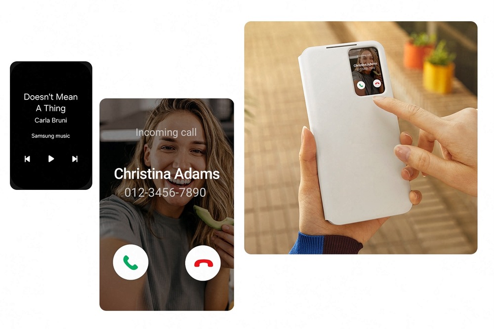 Vďaka priehľadnému okienku na prednej strane puzdra budete mať vždy prehľad o čase, prichádzajúcich hovoroch a oznámeniach, a to všetko bez toho, aby ste museli puzdro otvoriť.