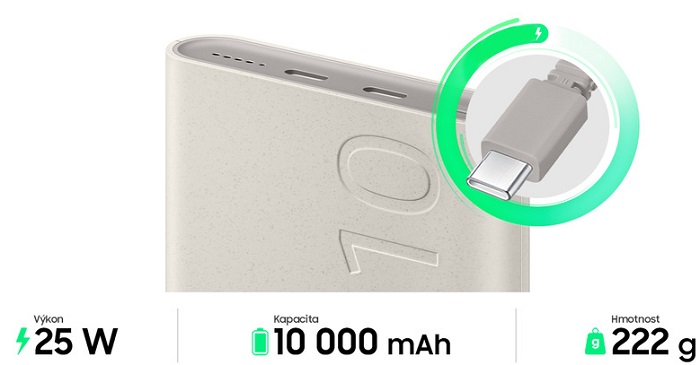 Na výrobu powerbanky použila spoločnosť Samsungrecyklované materiály s certifikátom UL, čo potvrdzuje snahu spoločnosti o zníženie emisií uhlíka a šetrenie vzácnych zdrojov. Kúpou tejto powerbanky pomáhate chrániť našu planétu a podporujete zhodnocovanie spotrebiteľského odpadu, ktorý nájde nové využitie.