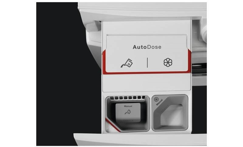 TechnológiaAutoDose s inteligentnými senzormiautomaticky dávkuje presné množstvo pracieho prostriedku a zmäkčovadla podľa kapacity náplne. Vďaka tejtorevolučnej technológii dosiahnete ešte lepšie výsledky prania. Vyhnete sa neúmyselnému poddávkovaniu, ktoré spôsobuje zašednutie tkaniny, alebo nadmernému dávkovaniu, ktoré ničí štruktúru vlákien.