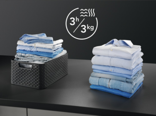 Díky programu NonStop 3 h / 3 kg postačí pračce AEG pouhé 3 hodiny na vyprání a usušení 3kilogramové náplně. Program ocení nejen domácnosti s malými dětmi. Mějte své oblíbené oblečení připraveno k nošení ještě ten samý den.