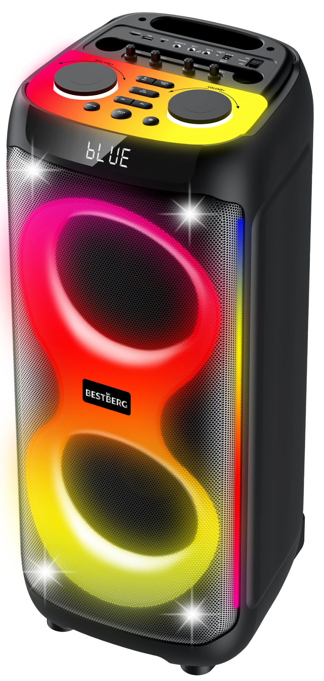 Vyžarujte energiu a zábavu na každej párty s naším prenosným reproduktorom BestBerg BBPS-2400.2 Party Speaker. Vychutnajte si hudbu, karaoke a svetelné efekty, ktoré rozžiaria každý večer!