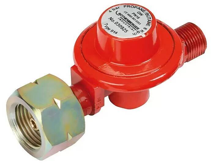 Priemyselný regulátor konštantného propánu Rothenberger / 4 bar / mosadz / spotreba plynu max. 8000 g/h / červený