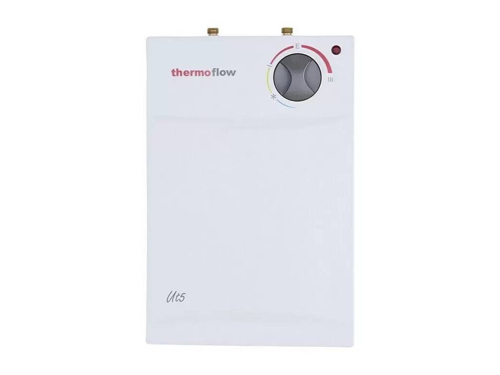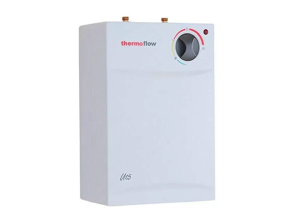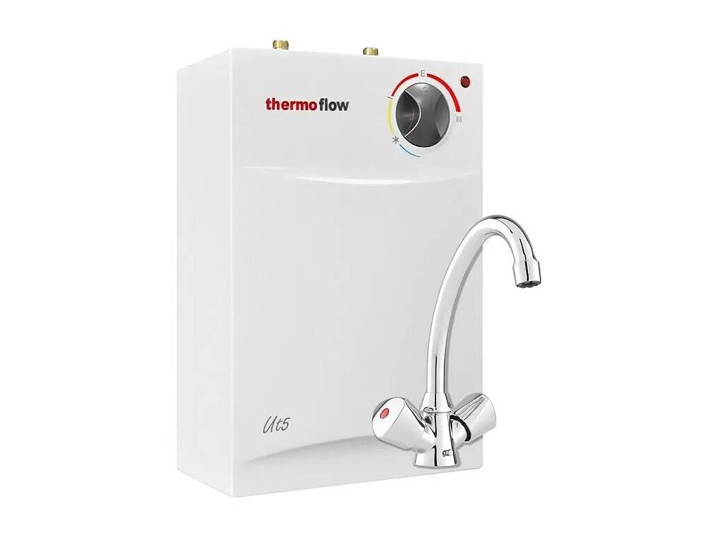 Podomietkový prietokový ohrievač Thermoflow UT 5 spĺňa vaše najvyššie nároky na ekonomický komfort. Otvorenú (beztlakovú) inštaláciu je možné vykonať len s nízkotlakovými armatúrami. Súčasťou dodávky je zodpovedajúci zmiešavací ventil QMIX 12, ktorý je ideálny pre umývadlá a kuchynské drezy. Vďaka vysokému výkonu sa voda ohreje v krátkom čase. Prostredníctvom termostatu je možné nastaviť teplotu až do 75 °C. Zodpovedajúca armatúra pre bojler má flexibilné pripojenie a umožňuje plynulú reguláciu teploty.
