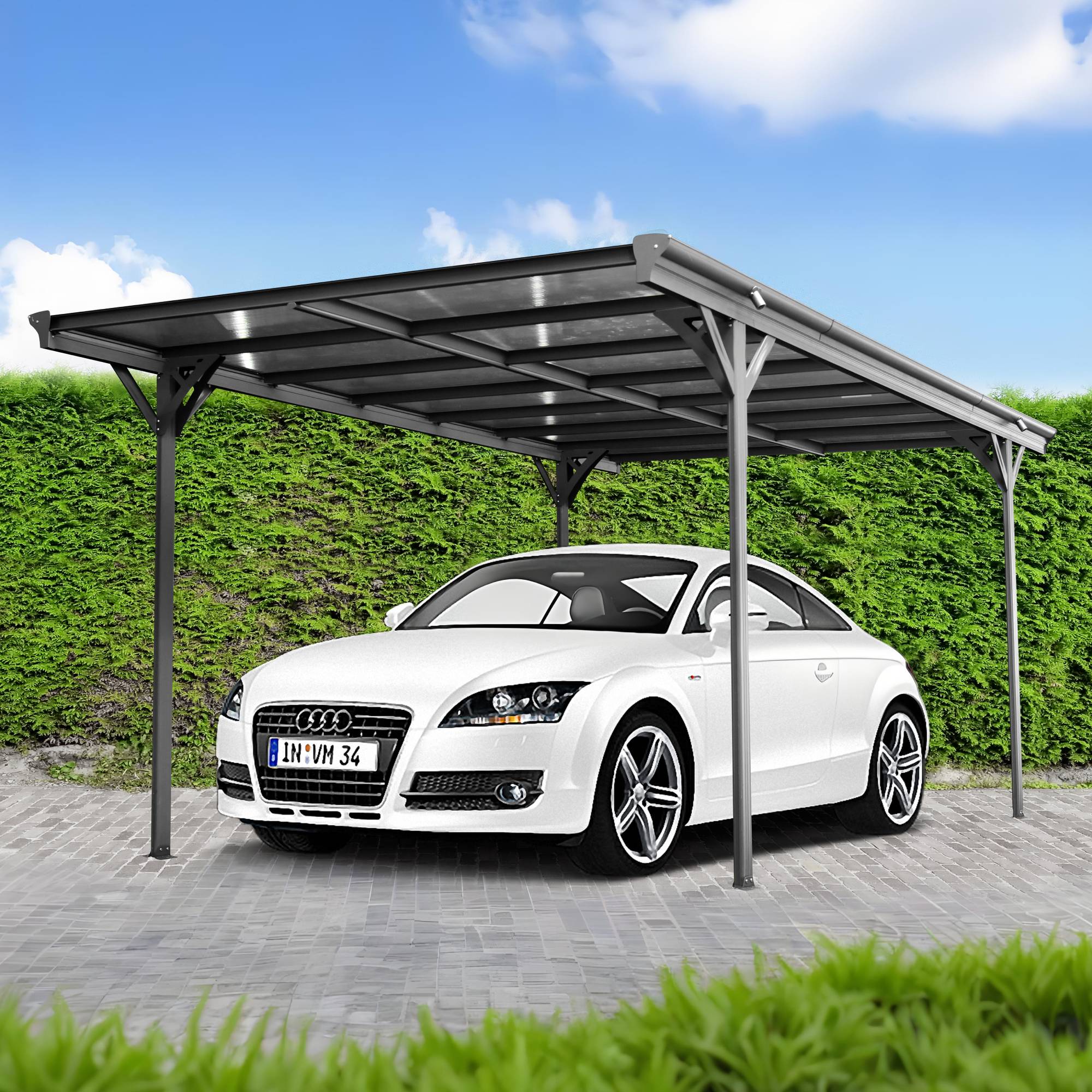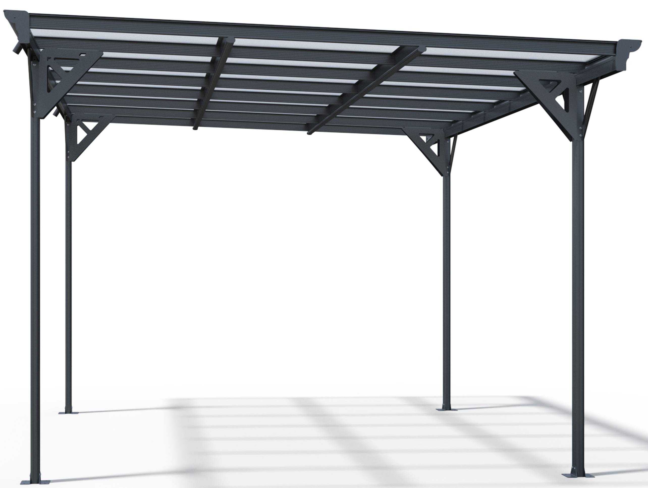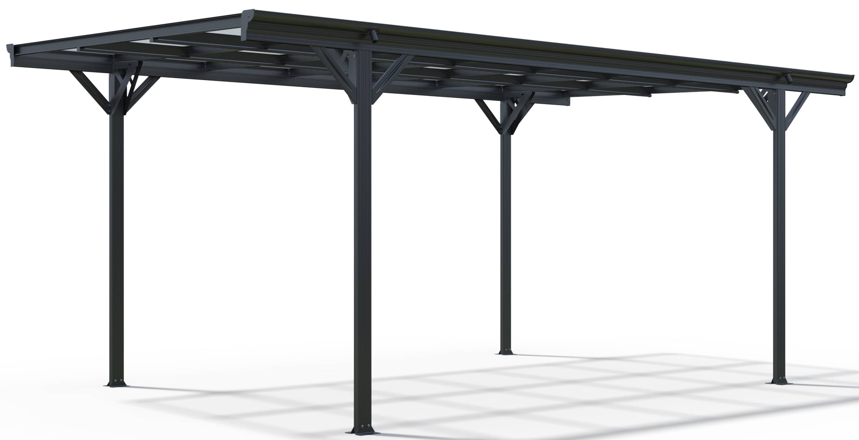 Moderný dizajn a vysoká odolnosťKombinácia hliníka a pozinkovanej ocele vytvára pevnú a zároveň ľahkú konštrukciu. Práškovo lakovaný rám vo farbe antracitová RAL7016 pôsobí elegantne a zároveň zabezpečuje dlhodobú ochranu proti korózii. Robustná konštrukcia odoláva bežným klimatickým podmienkam a zostáva stabilná aj po rokoch používania. TIP: Vďaka modernému vzhľadu možno prístrešok použiť nielen ako parkovacie miesto, ale aj ako strechu na terasu alebo pracovný priestor.