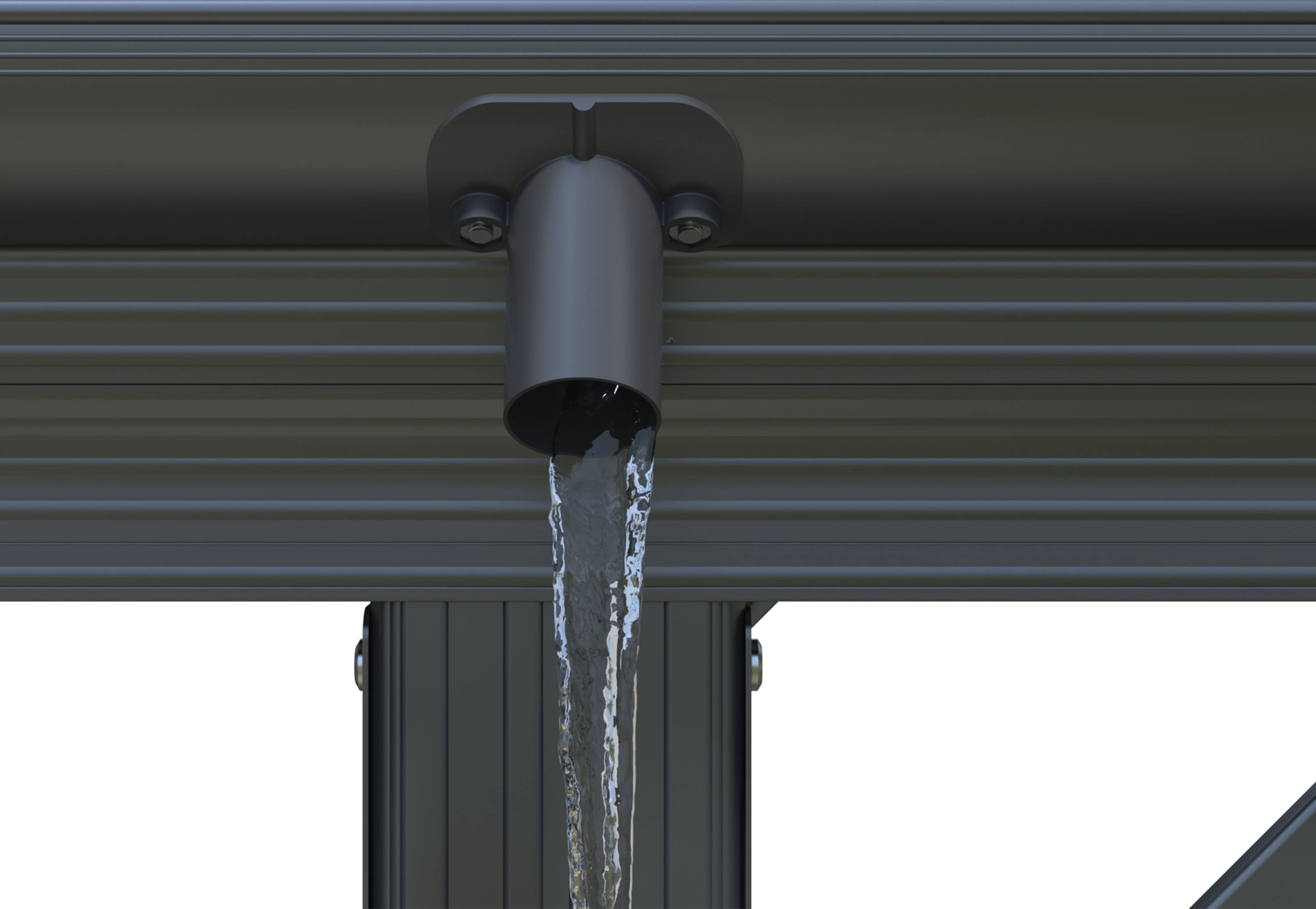 Integrovaný odvod vodyKonštrukcia prístrešku pre auto obsahuje zabudované žľaby a odvodňovací systém. Prívalová voda je účinne odvádzaná z plochy prístrešku pre auto a môže sa ďalej využívať napríklad na zavlažovanie záhrady. Suchý parkovací priestor zvyšuje komfort aj ochranu vozidla. TIP: Zachytenú dažďovú vodu môžete využiť ako ekologický zdroj na zavlažovanie.