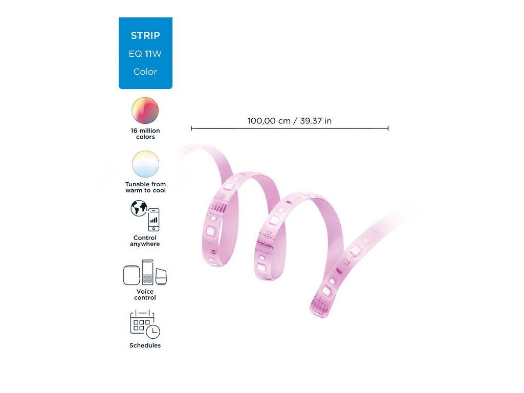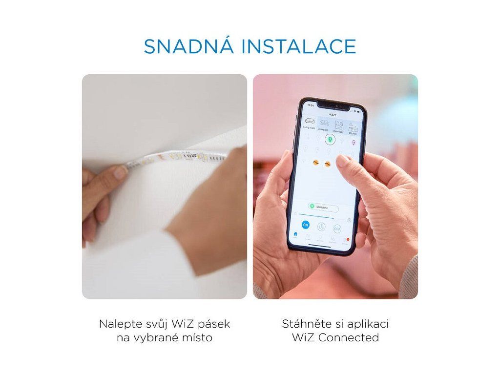 Chytrý LED pásik od WiZ Lightstrip je kompatibilný s bezdrôtovými Wi-Fi sieťami. Vďaka tomu máte jeho ovládanie na dosah ruky prostredníctvom chytrej mobilnej aplikácie na smartfóne alebo tablete. A aby toho nebolo málo, pás je kompatibilný aj s modernýmihlasovými asistenčnými systémami.