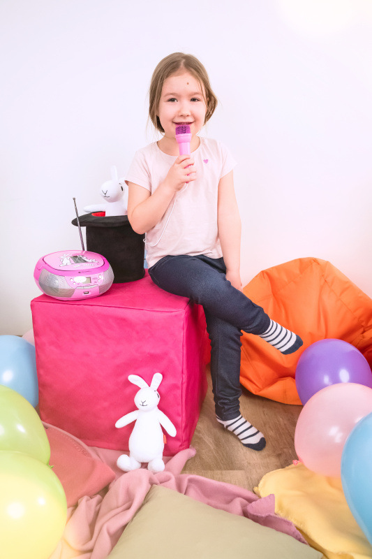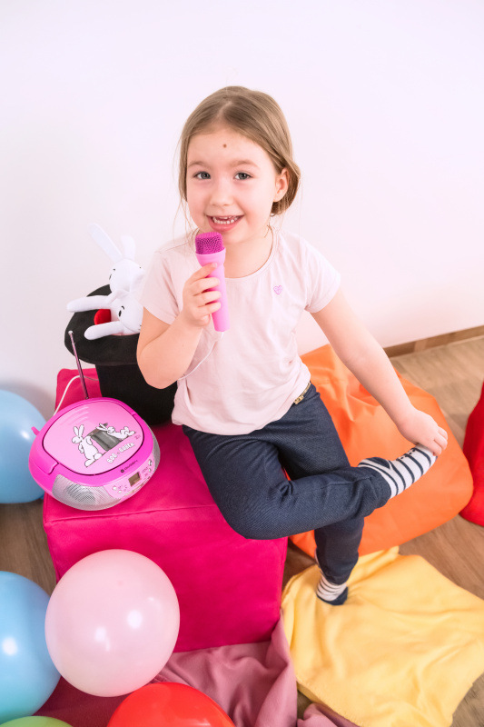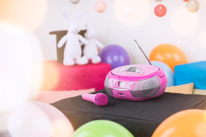 Potěšte vaše děti poslechem hudby, zpíváním na pozadí hudební skladby nebo třeba možností přehrávání pohádek. Díky radiopřijímači s karaoke mikrofonem, který disponuje digitálním tunerem s širokým vlnovým rozsahem FM 87,5–108,0 MHz budete mít o zábavu postaráno.