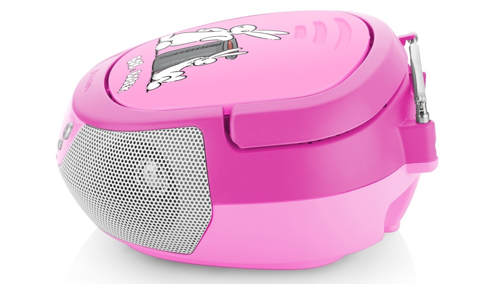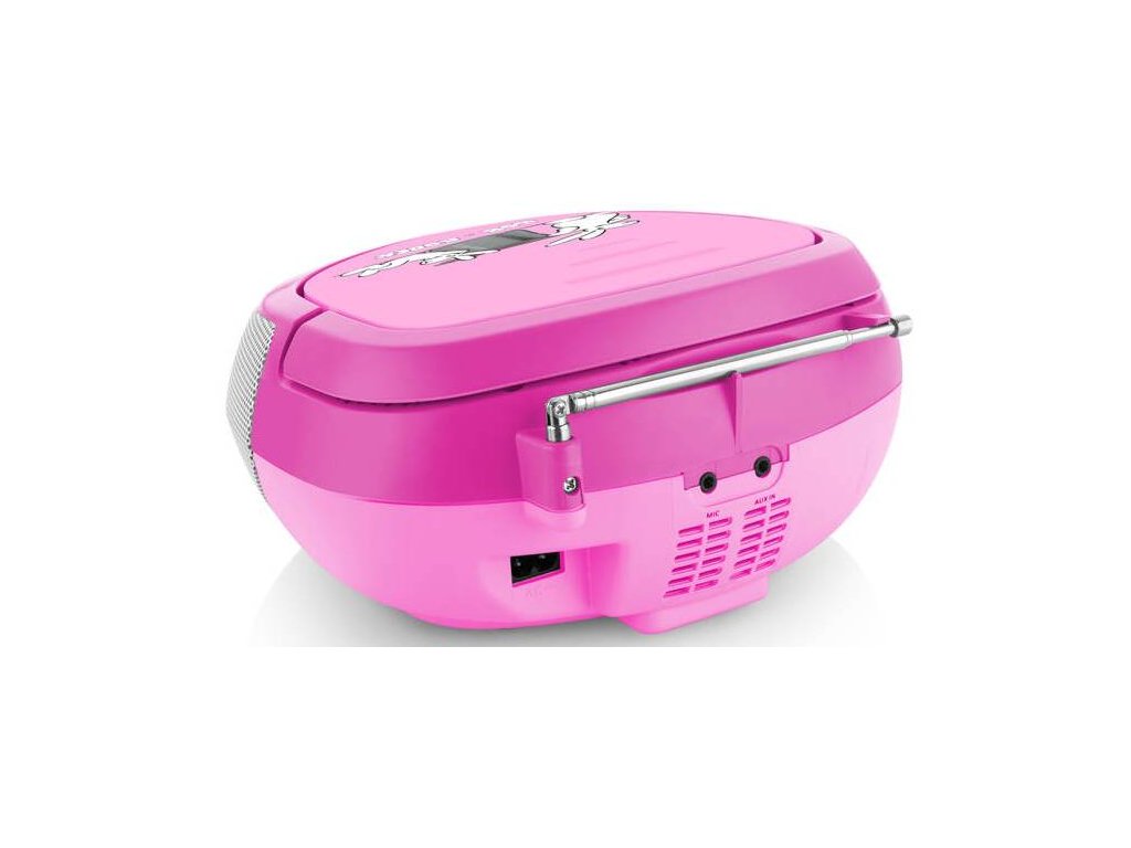 Rozkošný růžový rádiový přijímač obsahuje CD mechaniku, vstup pro USB s maximem 32 GB a dále i vstup AUX. Bez váhání můžete tedy připojit váš mobilní telefon nebo tablet a vylepšit si možnosti nabídky hudebního obsahu třeba i po půlnoci, kdy už vaše děti spí.