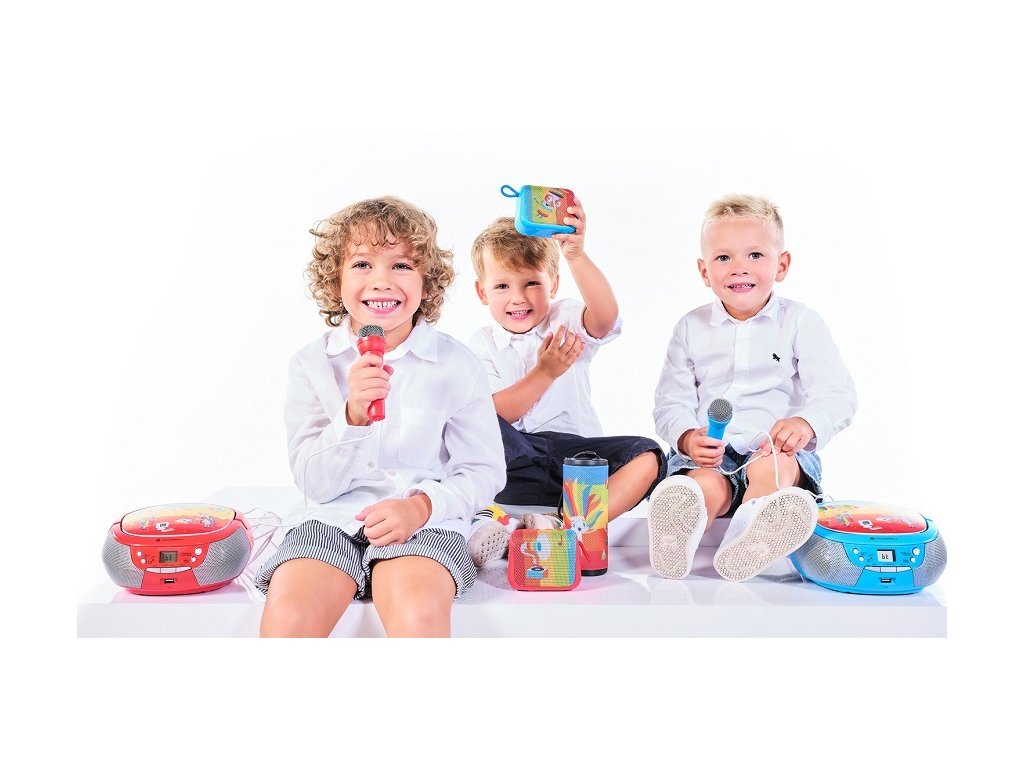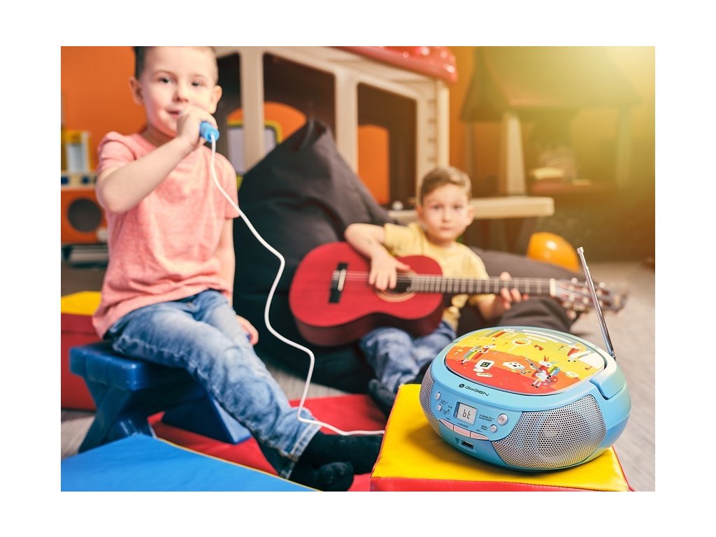 Radiopřijímač s CD GoGEN Déčko / Blutooth / 2 × 0,8 W / modráRadiopřijímač GoGEN Déčko si vaše děti zamilují! Přehrávač zdobí motiv postaviček z Déčka a užijí si s ním i spoustu zábavy. GoGEN Déčko umožňuje využívat funkci karaoke, jež z vašich ratolestí udělá nadějné zpěváky, neboť jim umožní přímo do aktuálně hrající hudby přimíchávat svůj hlas.