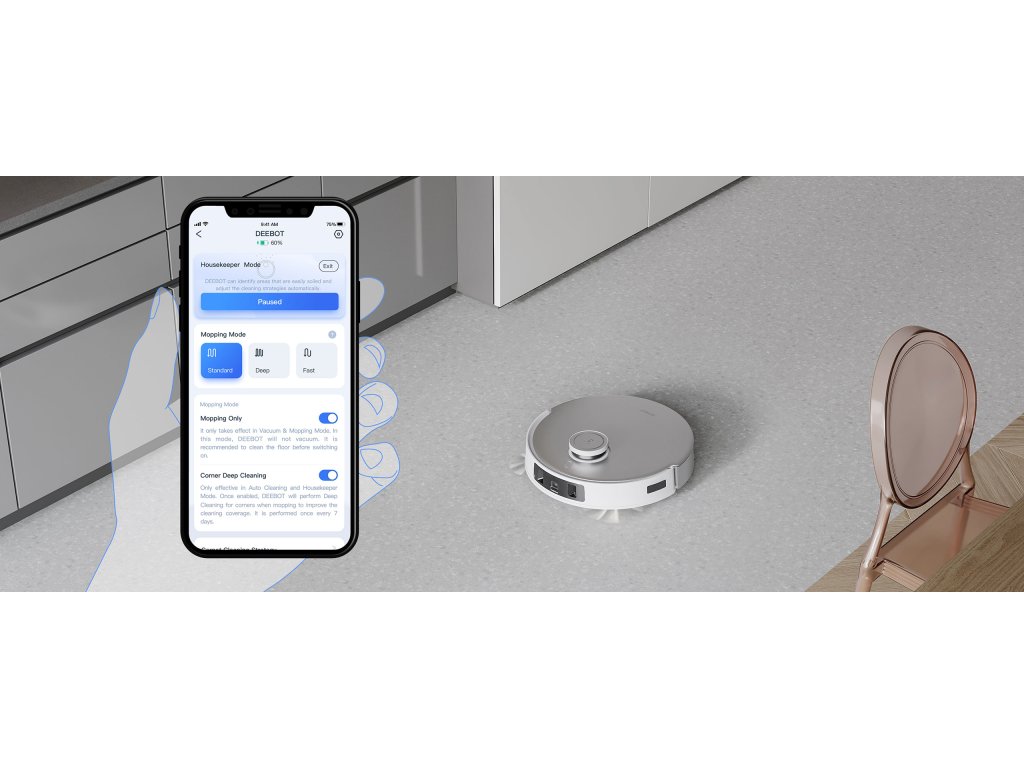 S novým vylepšeným režimom Housekeeper Mode 2.0 dokáže vysávač inteligentne a dynamicky upravovať parametre upratovania na základe individuálneho domáceho prostredia a preferencií pri upratovaní.