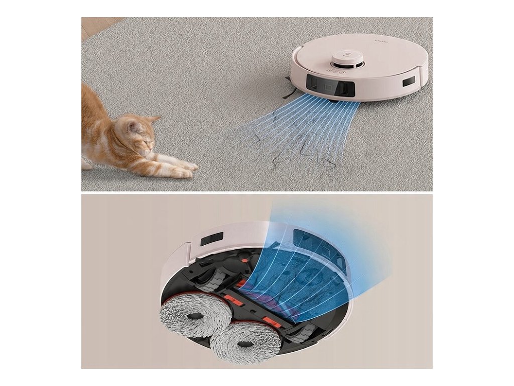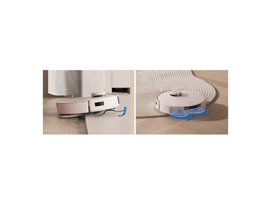 sací systém so zvýšeným výkonom až 11 000 Pa účinne odstraňuje nečistoty a prach z kobercov a tvrdých podláh. Robotický vysávač R dokáže vysávať aj koberce - po rozpoznaní technológie Auto-Lift Mopping System zdvihne rotujúce mopy až 9 mm avysoký sací výkon zabezpečí hĺbkové čistenie vlasu koberca. Zariadenie s bočnou kefou spoľahlivo čistí aj pozdĺž stien a nábytku.