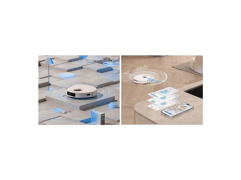 Vychutnajte si nezávislosť tohto robotického pomocníka. Duálny LiDAR laser mapuje okolie a v spojení s navigačnou technológiou TrueMapping 2.0 inteligentne plánuje trasu čistenia. Robot sa pohybuje v logických priamych líniách a vďaka bezdotykovej detekcii prekážok TrueDetect 3D 3.0 sa vyhne kusom nábytku, dekoráciám a zvieracím miskám.