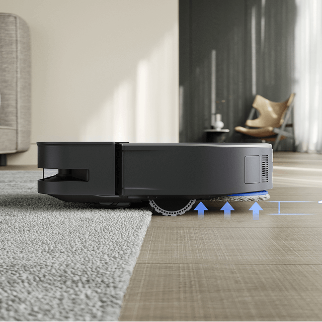 Díky 15 mm technologii automatického zdvihu mopu inteligentně nastaví výšku pro čištění koberců, automaticky zvedá mopy, aby se zabránilo namočení, a zároveň zvyšuje sací výkon, aby účinně odstranil skrytý prach, zajistil důkladné čištění a zabránil nežádoucí sekundární kontaminaci.