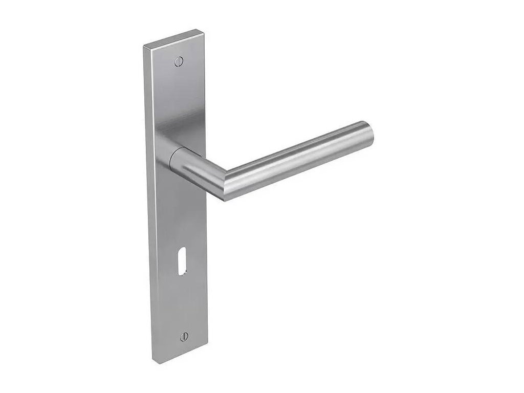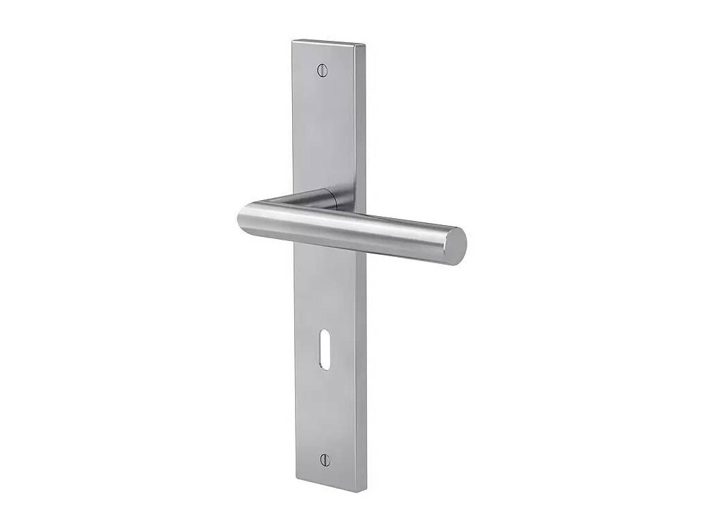 Diamantové dvere / tvar L / 40 - 45 mm / Buntbart BB / nerezová oceľ / striebornáSúprava dverového kovania Diamond Doors je určená pre tých, ktorí uprednostňujú čisté línie a moderný dizajn. Kľučky dverí tohto štýlu bývania vychádzajú zo základných geometrických tvarov a umiestňujú objektívne a jasné akcenty pre hmatovo jemné odlíšenie. Variant v tvare písmena L možno označiť za nadčasovú modernú klasiku.