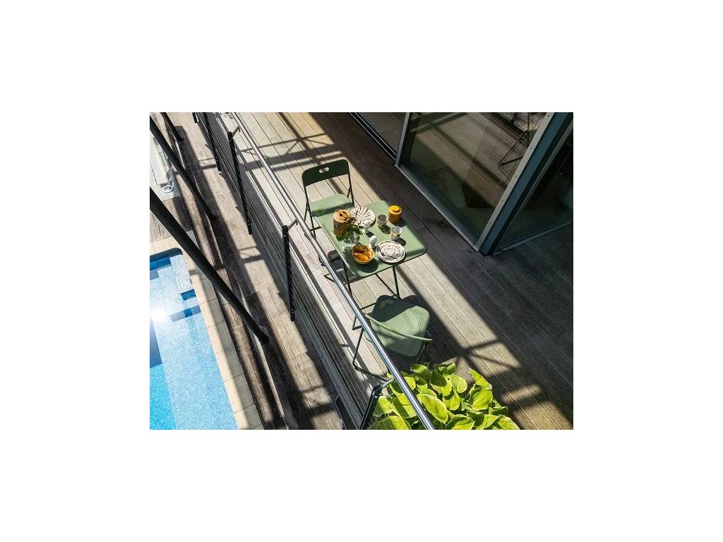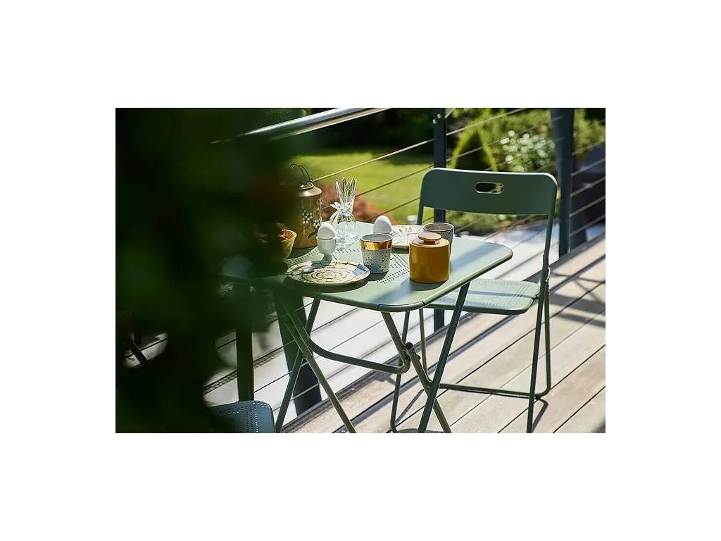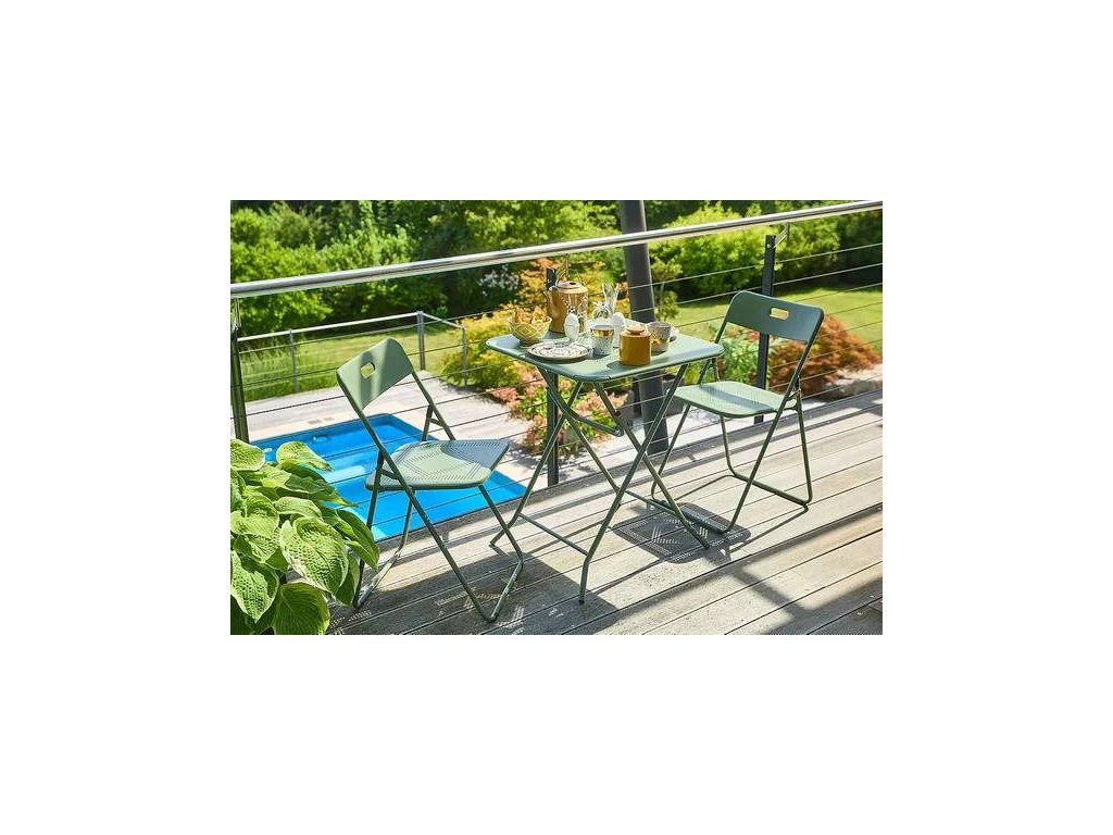 Trojdielna súprava Jordan v olivovo zelenej farbe je ideálnym riešením pre každého, kto si chce vytvoriť útulný kútik na balkóne, terase alebo v záhrade. Skladacia konštrukcia šetrí miesto a umožňuje jednoduché skladovanie, keď práve nesedíte vonku. Kovový rám s práškovou povrchovou úpravou zaručuje stabilitu a odolnosť voči poveternostným vplyvom, zatiaľ čo jemné laserové gravírovanie dodáva nábytku originálny nádych.
