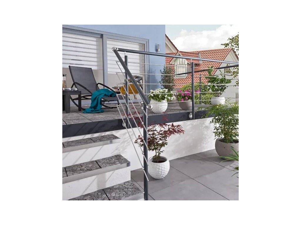 Sada zábradlia Treba Frewa AG5 je vhodná najmä na schody, balkóny alebo terasy. Hliník možno vďaka jeho odolnosti voči korózii použiť v interiéri aj exteriéri. V exteriéri je vhodnejšia inštalácia na bočnú stranu ako na horné poschodie z dôvodu vodotesnosti. Farebná kombinácia v antracitovej a nerezovej farbe harmonizuje s akýmkoľvek prostredím. Robustný systém zábradlia s ochranou proti preliezaniu ponúka väčšiu bezpečnosť v okolí domu a záhrady. Okrem toho ho možno podľa potreby rozšíriť. Vhodný montážny materiál - v závislosti od stavu steny - ako aj vhodné rohové a spojovacie súpravy sú k dispozícii samostatne.