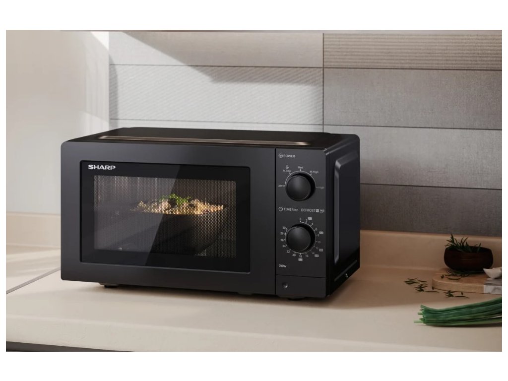 - Mikrovlnná rúra Sharp YC-MS181AE-B / 18 l / 700 W / O 24,5 cm / 5 nastavení výkonu / čierna
