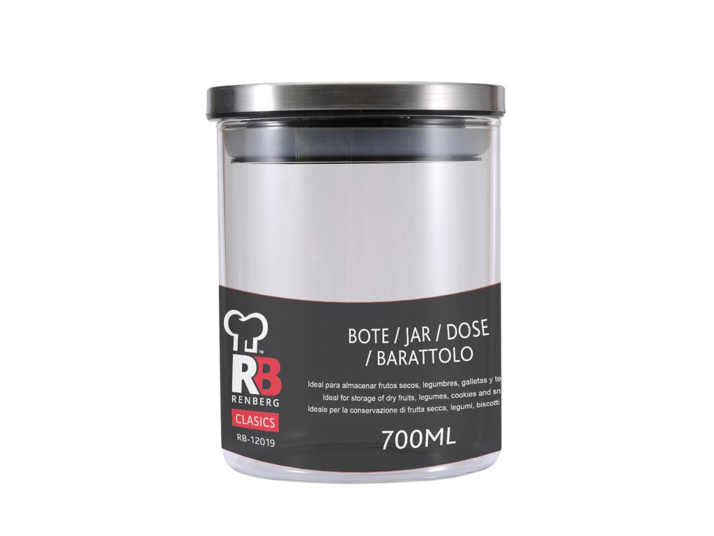 Nádoba z borosilikátového skla s vekom z nehrdzavejúcej ocele je vhodná na skladovanie akýchkoľvek potravín. Sú prenosné a vhodné pre všetky domácnosti. Má jednoduchý, elegantný a nadčasový dizajn. Vďaka materiálom použitým na výrobu viečka a nádoby je táto nádoba veľmi odolná a uchováva potraviny dlho čerstvé. V nádobe môžete bezpečne a pohodlne skladovať rôzne potraviny, korenie, sypané čaje alebo bylinky.