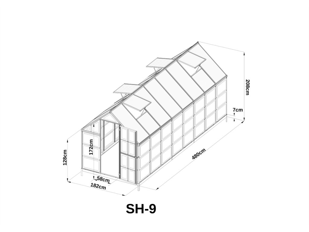 Skleník BestBerg SH-9 / 9 m² / 480 x 182 x 208 cm / strieborný