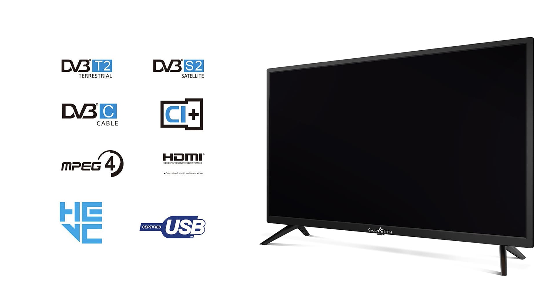 Vďaka kvalite obrazu s rozlíšením až 1366 × 768 zobrazujú televízory Smart Tech HD čistý a realistický obraz. Plynulý a jasný obraz uspokojí vaše najzákladnejšie potreby pri sledovaní filmov.
