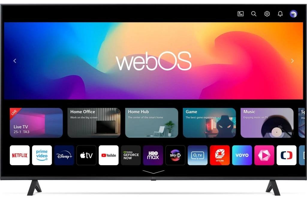 Vychutnajte si prémiovú zábavu s inteligentným televízorom 4K Ultra HD! Tento moderný 50" LED televízor s Technológiou Direct-LED a rozlíšením 3840 × 2160 px prináša dokonale ostrý obraz, realistické farby a plynulý pohyb s HDR10 a podporou progresívneho skenovania. Vďaka systému webOS 23 môžete pristupovať k obľúbeným aplikáciám, ako sú Netflix, Spotify, DAZN a NOW TV, a ľahko sa pripojiť prostredníctvom Wi-Fi, Bluetooth 5.0 a Ethernet. Funkcie ALLM, Game Dashboard a Game Optimizer potešia každého hráča, zatiaľ čo AI Sound poskytuje čistý a vyvážený zvuk s výkonom 20W. Elegantný čierny dizajn, Montáž VESA 200 × 200 mm a energeticky úsporná prevádzka s F (SDR) robia z tohto televízora ideálnu voľbu do každej domácnosti.