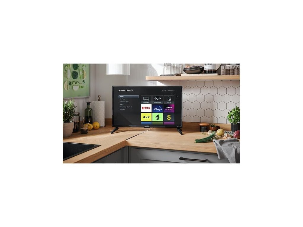 Televize Sharp 1T-C24FD7KF1FB je vybavena operačním systémem Roku TV, který poskytuje přístup k populárním streamovacím službám, jako jsou Netflix, Amazon Prime Video, Apple TV, Disney+ a YouTube. Podporuje funkci Screen Mirroring, díky které lze snadno zrcadlit obrazovku z mobilních zařízení, a je kompatibilní s DLNA pro sdílení obsahu v domácí síti. Dále je k dispozici elektronický programový průvodce (EPG) a služba Freeview Play, která umožňuje přehrávat pořady až 7 dní zpětně. Ačkoli nepodporuje plnohodnotné Google aplikace, uživatelé mohou využívat široký výběr aplikací dostupných přes Roku App Store. Televize nabízí i jednoduchý internetový prohlížeč a přístup ke streamovacím kanálům.