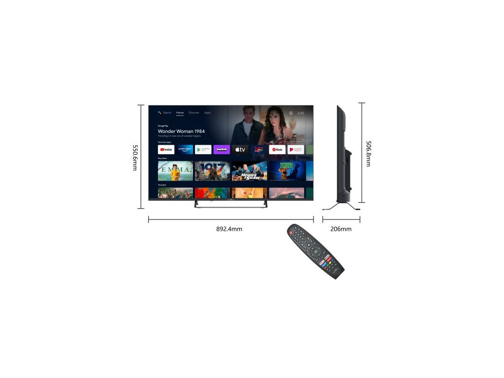 S operačním systémem Android TV 11 získáte přístup k oblíbeným aplikacím jako YouTube, Netflix, Amazon Prime či Google Play. Televizor podporuje Chromecast, HbbTV 2.0, Bluetooth, rychlou Wi-Fi 802.11 a LAN. Čtyřjádrový procesor a 8GB vnitřní paměť zajišťují svižný chod a pohodlné ovládání. K dispozici je i Google Asistent pro hlasové vyhledávání a chytré funkce.