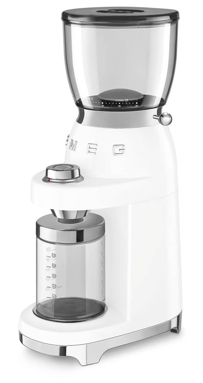 Smeg mlynček na kávu v štýle 50. rokov CGF01WHEU / 150 W / lesklá biela