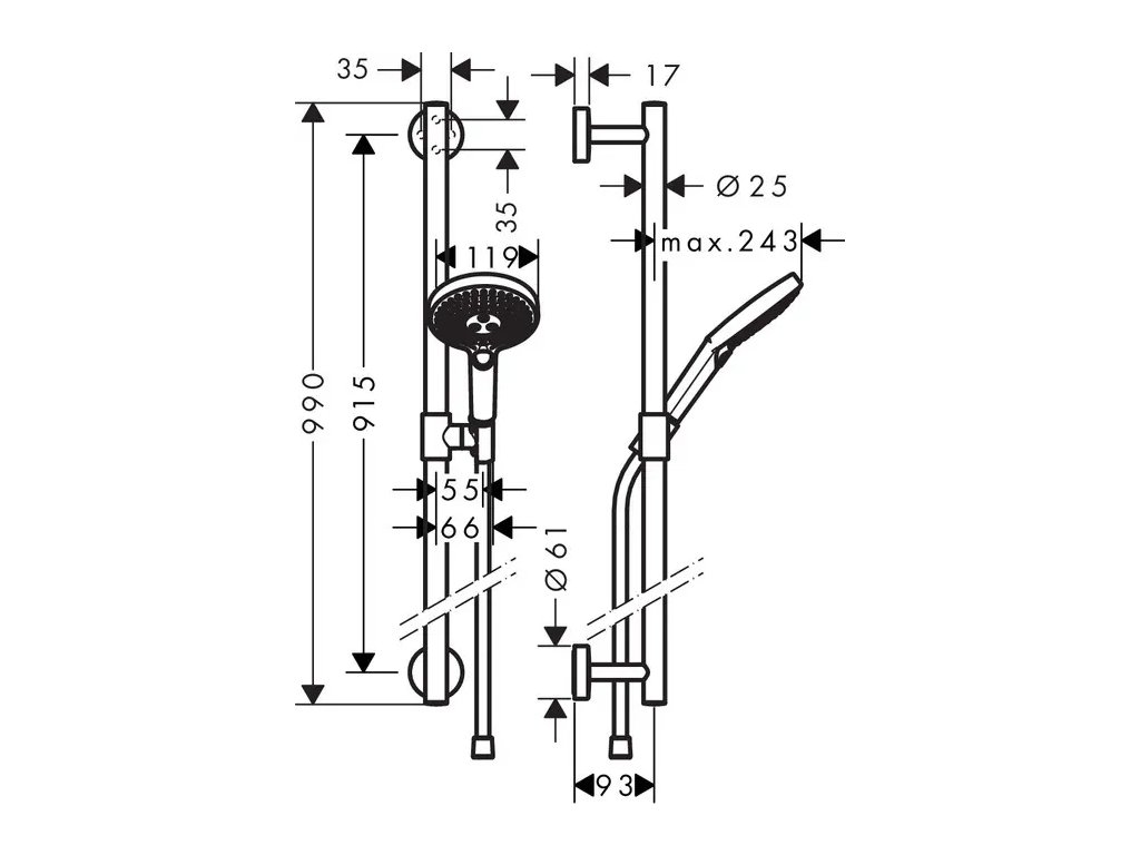 Sprchová súprava hansgrohe Raindance Select S EcoSmart spája pohodlné sprchovanie s vysokou úrovňou bezpečnosti. Stenová tyč s dĺžkou 90 cm je navrhnutá tak, aby slúžila aj ako pevné zábradlie, čím zvyšuje bezpečnosť pri každodennom používaní. Elegantný chrómový povrch a oblý dizajn sa dokonale hodia do moderných aj nadčasových kúpeľní.