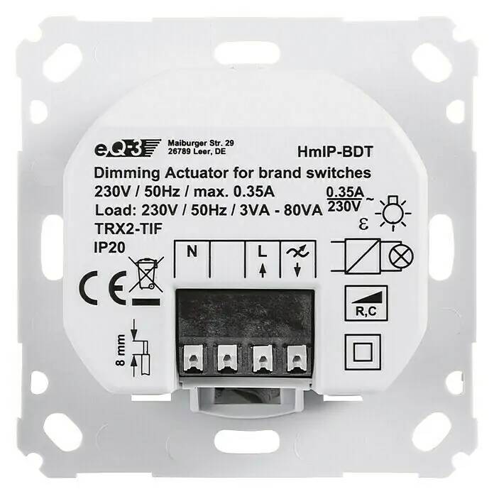 Existujúce vypínače možno vymeniť v niekoľkých jednoduchých krokoch, ak je v zásuvkovej krabici okrem fázy aj neutrálny vodič.Keďže aktuátor je stmievač s koncovou hranou, je vhodný najmä pre bežné žiarovky, halogénové žiarovky VN, halogénové žiarovky NN s elektronickým transformátorom, stmievateľné úsporné žiarovky a stmievateľné žiarovky LED.