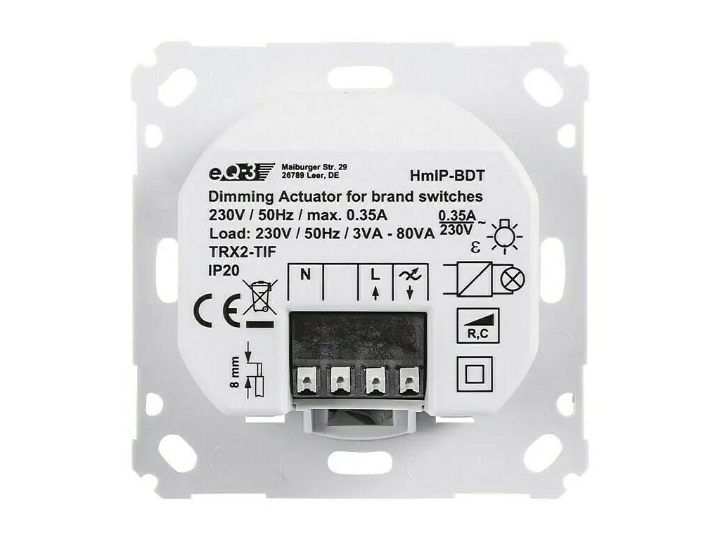 - Stmievacia vložka na zadnú hranu Homematic IP HmIP-BDT / plast / 0,4 W / 5 - 35 °C / 0,35 A / 230 V / biela