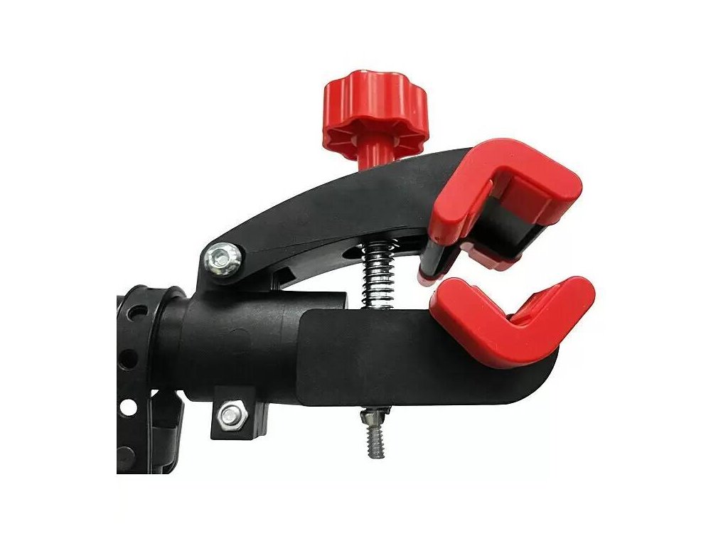 Bol vyrobený zrobustnej ocele a je mimoriadnestabilnývďakapiatim nohám statívu. Je vhodný pre všetky bežné typy bicyklov so šírkou rámu od 25 do 40 mm. Lak rámu je spoľahlivo chránený vďaka plastovým upínacím čeľustiam.V stojane je integrovaná priehradka nanáradie, aby ste mali vždy po ruke to správne náradie. Podporná tyč, ktorá spája montážny stojan s riadidlami, poskytuje dodatočnú stabilitu, ktorú potrebujete pri práci na prednom kolese alebo riadidlách.