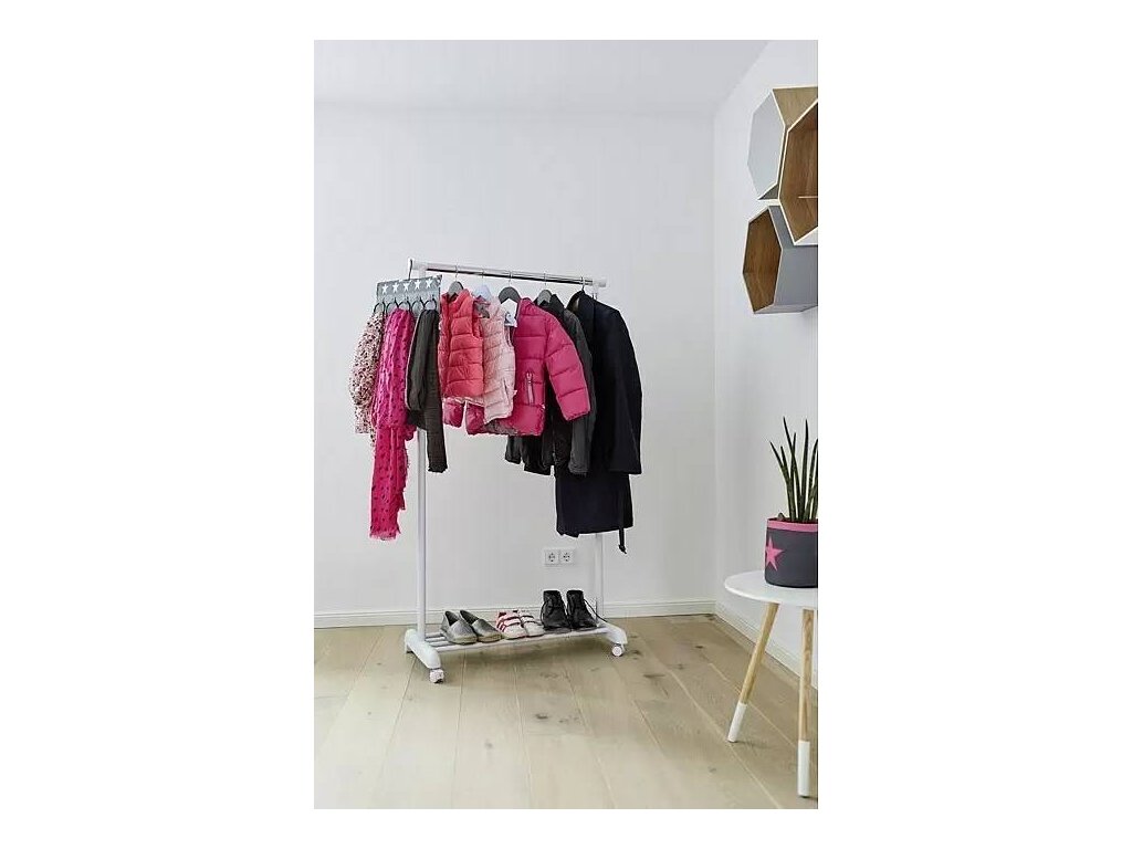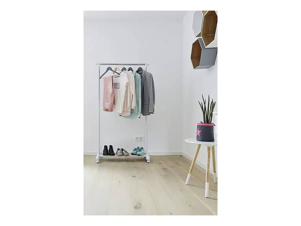 Stojan na oblečenie Store It je vhodný na odkladanie búnd, šiat, topánok a i. Je vybavený teleskopickou šatníkovou tyčou pre maximálny úložný priestor. Vešiak na oblečenie sa dá jednoducho zostaviť bez skrutiek pomocou zásuvkového systému a vďaka kolieskam sa dá ľahko premiestňovať.