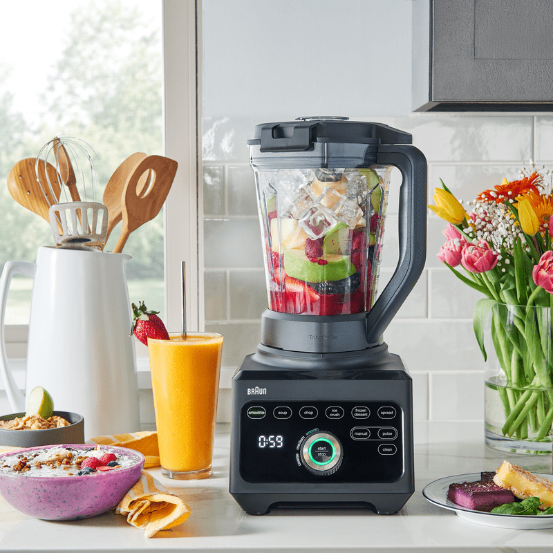 Stolný mixér Braun JB9040BK zaujme výkonným 1600 W motorom a 18 programami na prípravu chutných jedál. Odolná tritanová nádoba a rýchlosť až 45 000 otáčok za minútu pre rýchle a efektívne mixovanie, sekanie alebo drvenie. Nôž PrecisionEdge si v priebehu niekoľkých sekúnd poradí aj s tými najtvrdšími surovinami na prípravu lahodných polievok, omáčok, pyré, zmrzliny alebo smoothie.