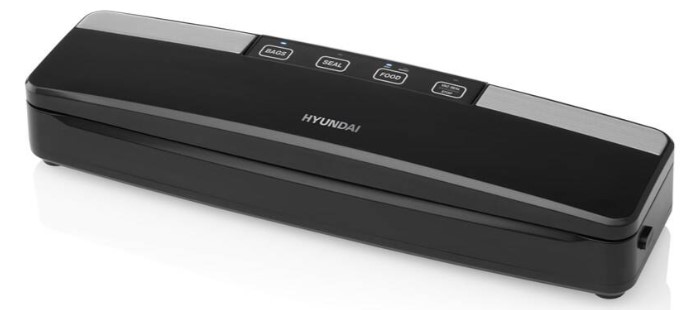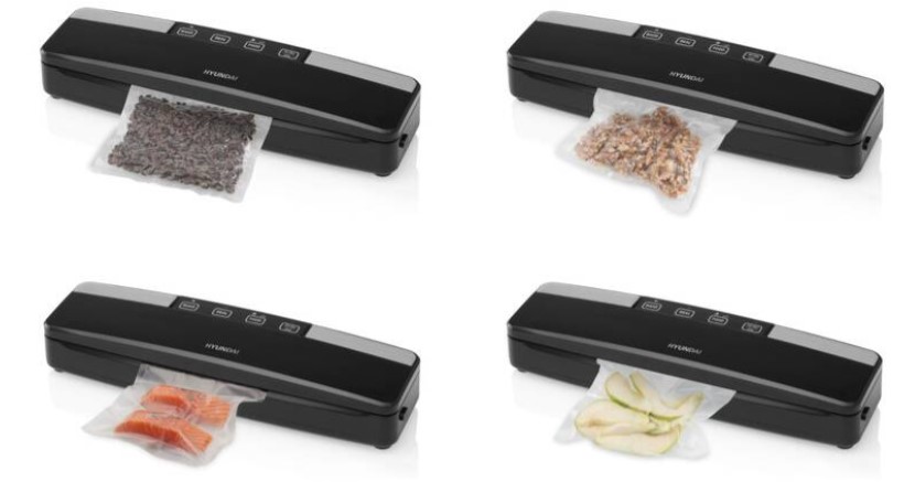 V sáčkoch môžete balené potraviny zmrazovať aj ohrievať. Zariadenie môžete použiť aj na ochranu dokumentov alebo cenností pred vlhkosťou a nežiaducimi vplyvmi.Zariadenie Hyundai VS 100 je vybavené bezpečnostnou tepelnou poistkou proti prehriatiu a svetelnou indikáciou prevádzky. Prívodný kábel je dlhý 1 m.