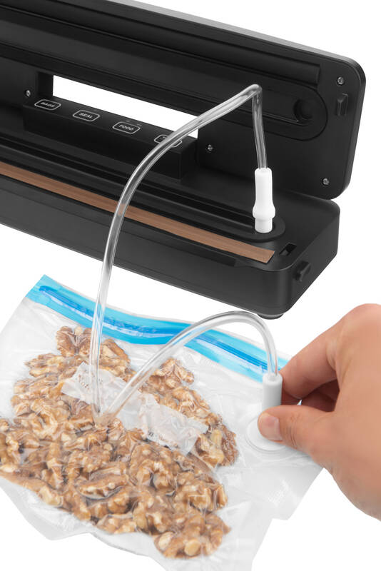 - Plne automatický: pevne uzamkne fóliu zatvorením, odsatím vzduchu a utesnením spoja