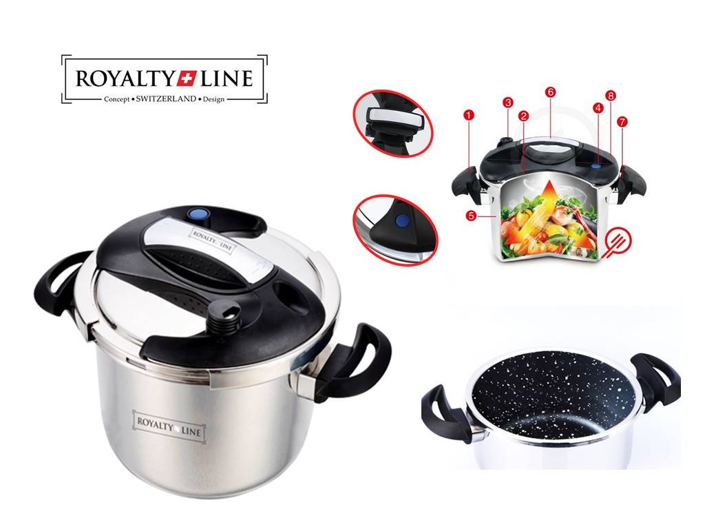 Mnoho ľudí sa bojí používať tlakový hrniec. To však už nemusí platiť pri používaní moderného tlakového hrnca Royalty Line, ktorý má 6 bezpečnostných prvkov a zatvára sa jednoduchým otočením rukoväte.