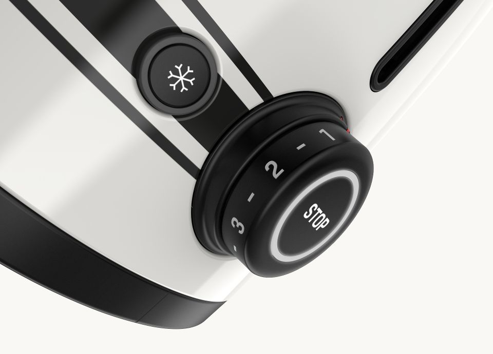 Vyberte si ze šesti stupňů opečení, aby byl toast přesně podle vaší chuti. Funkce Ohřev, Rozmrazování a Bagel přinášejí flexibilitu pro každou snídaňovou situaci. Toustovač Porsche x SMEG není jen spotřebič – je to designový kousek, který spojuje nadčasovou eleganci Smeg s odvážným a sportovním duchem Porsche, přidávající styl a charakter do každé kuchyně.