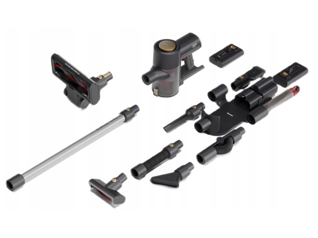 Nechýba motorizovaná kefa, ktorá si hravo poradí s kobercami a chlpmi domácich zvierat, alebo mini motorizovaný nadstavec, ideálny na čalúnenie, pohovky alebo matrace. Na čistenie stiesnených priestorov použite štrbinovú hubicu, zatiaľ čo flexibilný predlžovací nástavec sa prispôsobí rohom, štrbinám a úzkym priestorom pod nábytkom. kombinovaná hubica 2 v 1 je ideálna na šetrné vysávanie nábytku a chúlostivejších povrchov a teleskopická trubica zabezpečuje pohodlný dosah bez ohýbania. Všetko príslušenstvo môžete prehľadne uložiť do vymeniteľnej dokovacej stanice, ktorá slúži aj ako nabíjacia základňa pre obe batérie.