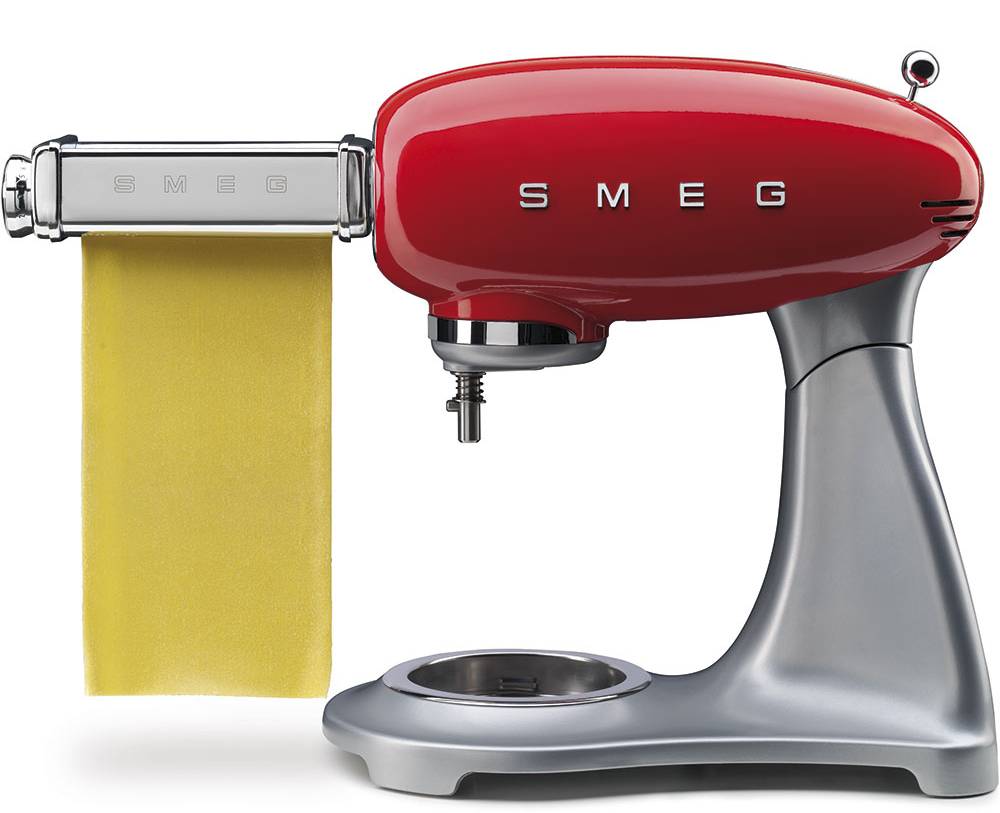 Stroj na vaľkanie cesta SMPR01 / príslušenstvo pre Smeg SMF01/02/03/13 / chrómová oceľTelo z chrómovej ocele. Valce z eloxovanej hliníkovej zliatiny. 10 nastavení na nastavenie hrúbky cesta (od 4,8 mm pri nastavení č. 0 do 0,6 mm pri nastavení č. 9).
