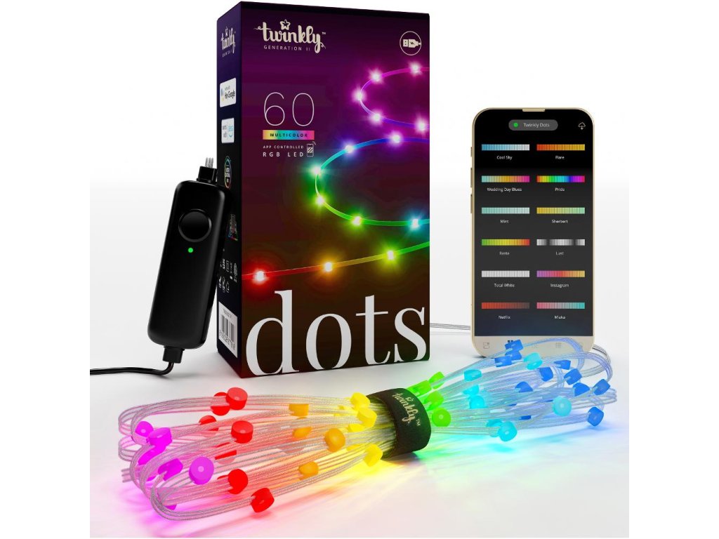 Transparentní pásek s 60 kvalitními LED diodami měří tři metry a lze ovládat spolu s dalšími světelnými produkty Twinkly jako jeden provázaný celek. Můžete si užít jednoduchou eleganci, ale i dokonale propracovanou hru světelných efektů a animací. Twinkly DOTS RGB je perfektní interiérová dekorace, která navodí neopakovatelnou atmosféru – vždy podle vaší aktuální chuti. Je zároveň chráněna stupněm krytí IP20, jež je vhodná pro vnitřní použití.