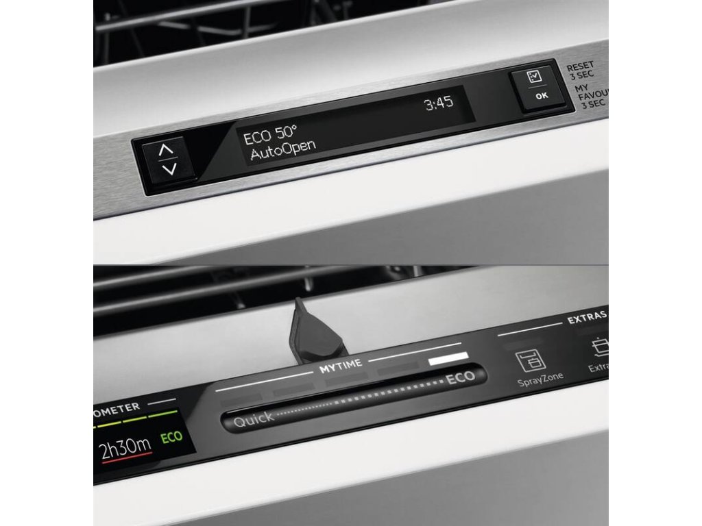 Ovládanie umývačky riadu AEG FSB53927Z série 7000 je jednoduché vďaka ovládaču QuickSelect. Program prania nastavíte v okamihu jednoduchým dotykom. Inovatívne ovládanie je prostredníctvom posuvného ovládača na výber dĺžky trvania programu a dotykom na pridanie ďalších voliteľných funkcií.