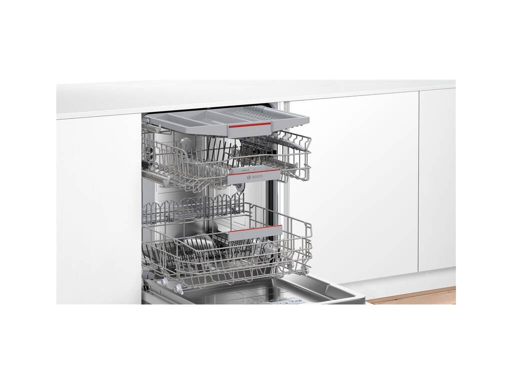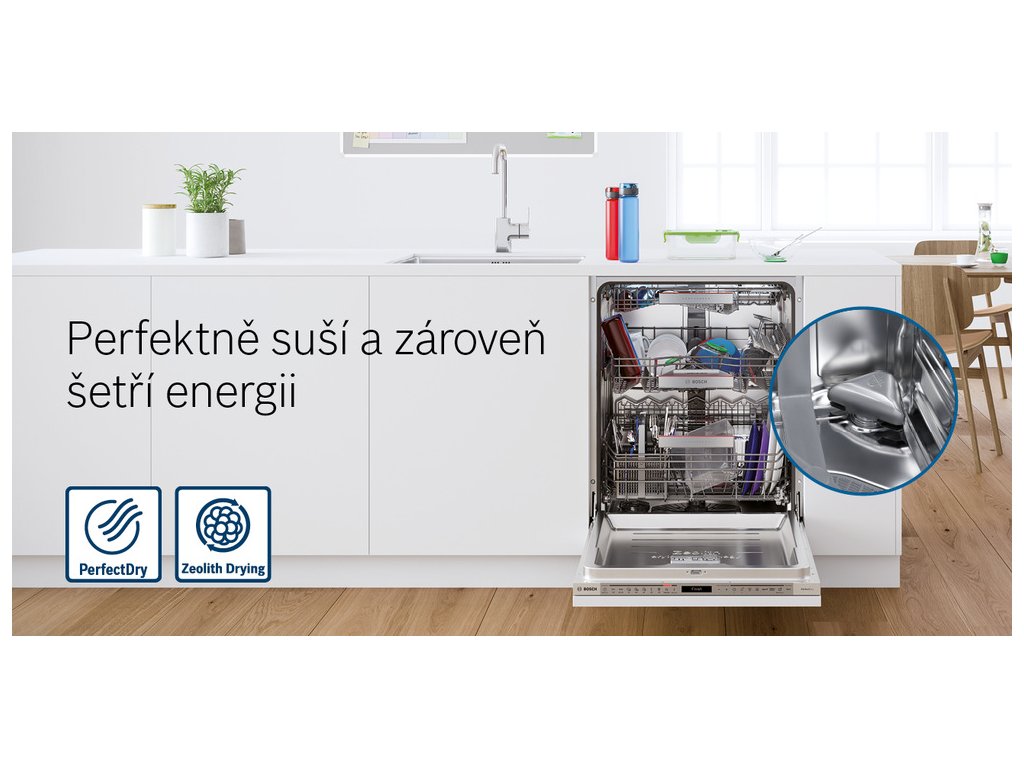 Ideálna pre veľkú rodinu, Bosch SBV6YCX00Evstavaná umývačka riadu s výškou 86,5 cm umyje až 14 súprav riadu. Všetko môžete ľahko umiestniť do flexibilných košíkov Flex a v hornej časti je zásuvka na príbory. Na výber máte 6 programov, môžete si vybrať aj svoj obľúbený. Systém PerfectDryZeolith. Po skončení programu sa dvierka umývačky automaticky otvoria. Motor EcoSilence je úsporný a zároveň tichý, dosahuje hladinu hluku iba 43 dB.