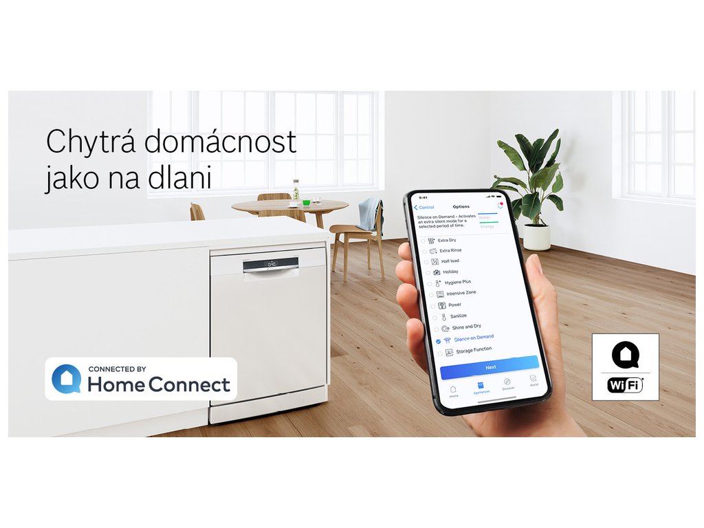 Na prvý pohľad zistíte, či je umývačka riadu stále umytá. Je to vďaka svetelnému lúču InfoLight, ktorý sa počas umývania premieta na podlahu. Umývačka Bosch SBV6YCX00E podporuje aj pripojenie Wi-Fi. Všetko dôležité je možné nastaviť na diaľku. Spotrebič disponuje aj dávkovacím asistentom či automatickým nastavením podľa typu pracieho prostriedku. Používanie je preto maximálne užívateľsky komfortné.